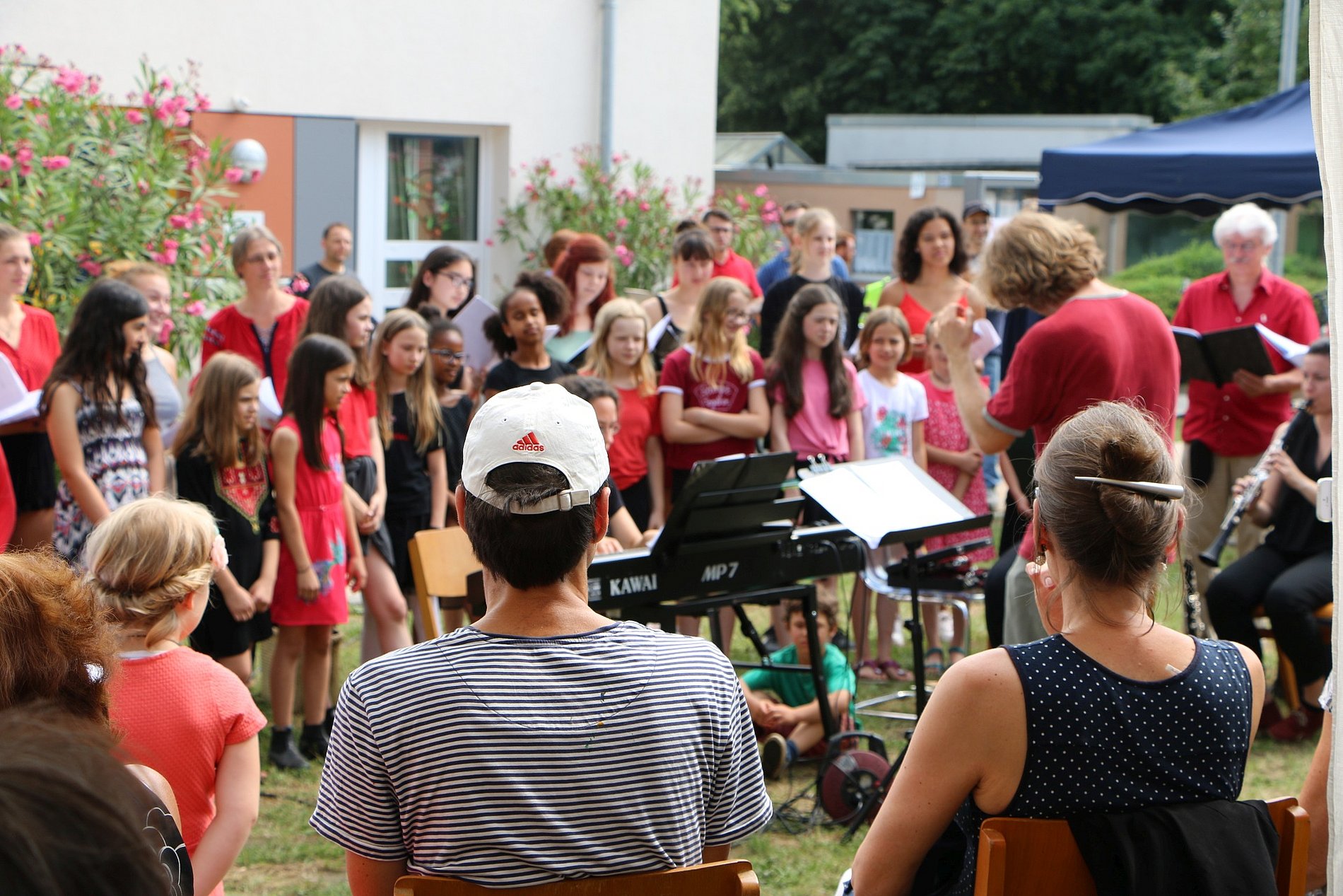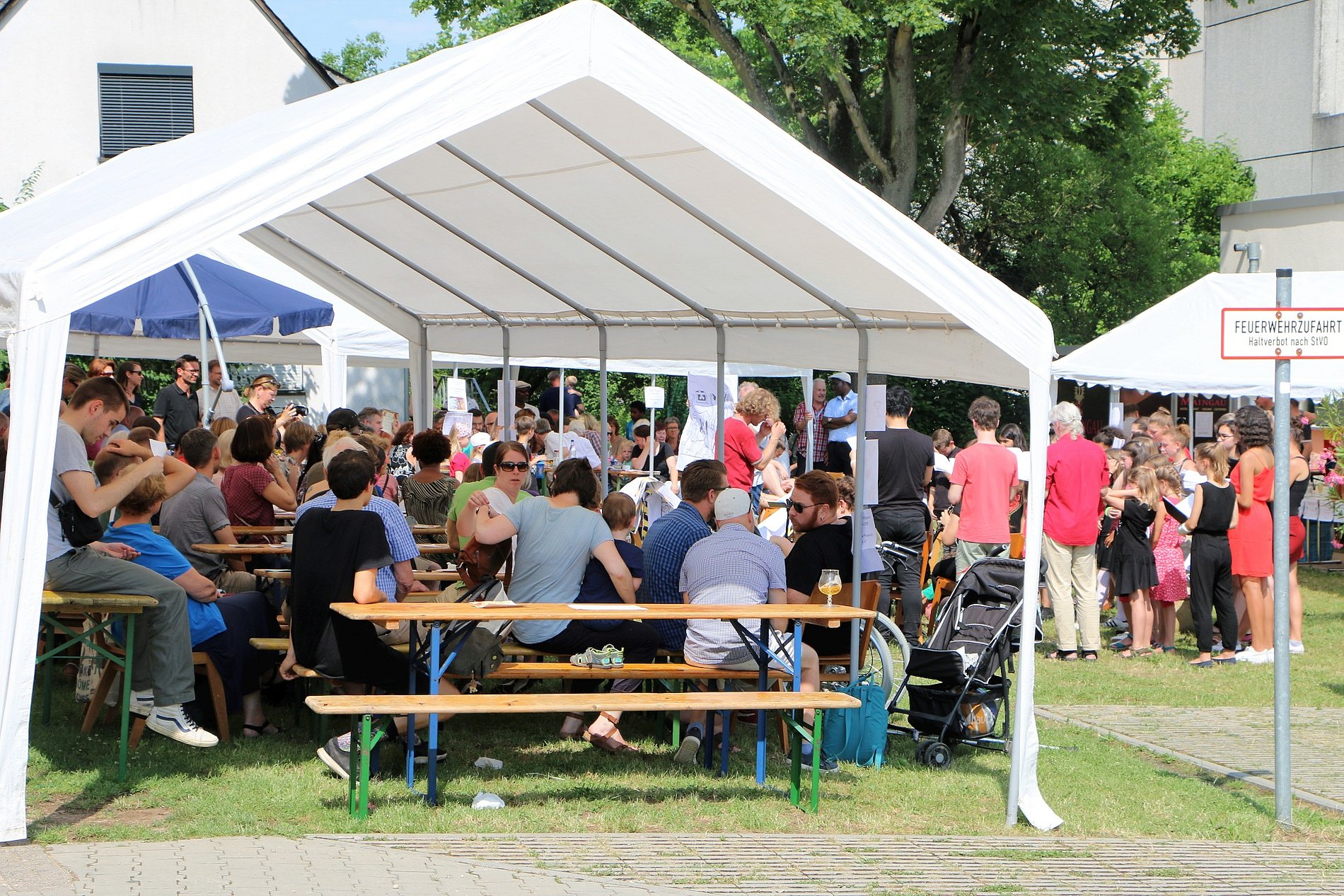 Und das Wetter hielt und so konnten die Gemeinde und ihre Gäste wie gewohnt das traditionelle Elternspiel, die Hüpfburg, ein kleines Chorkonzert sowie allerlei Leckeres von Küche und Grill genießen.