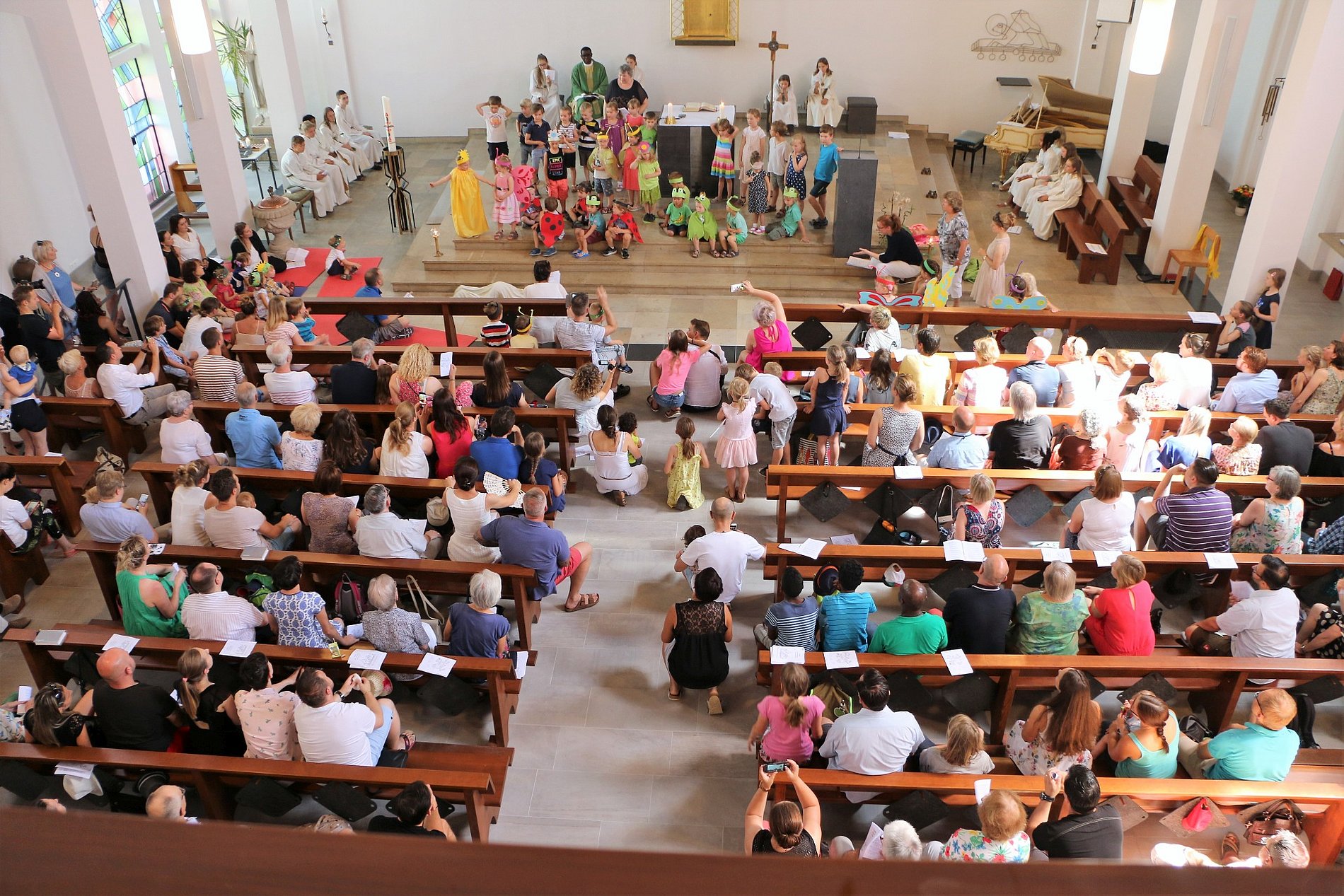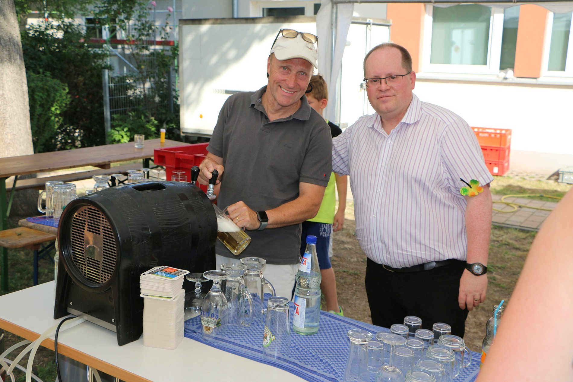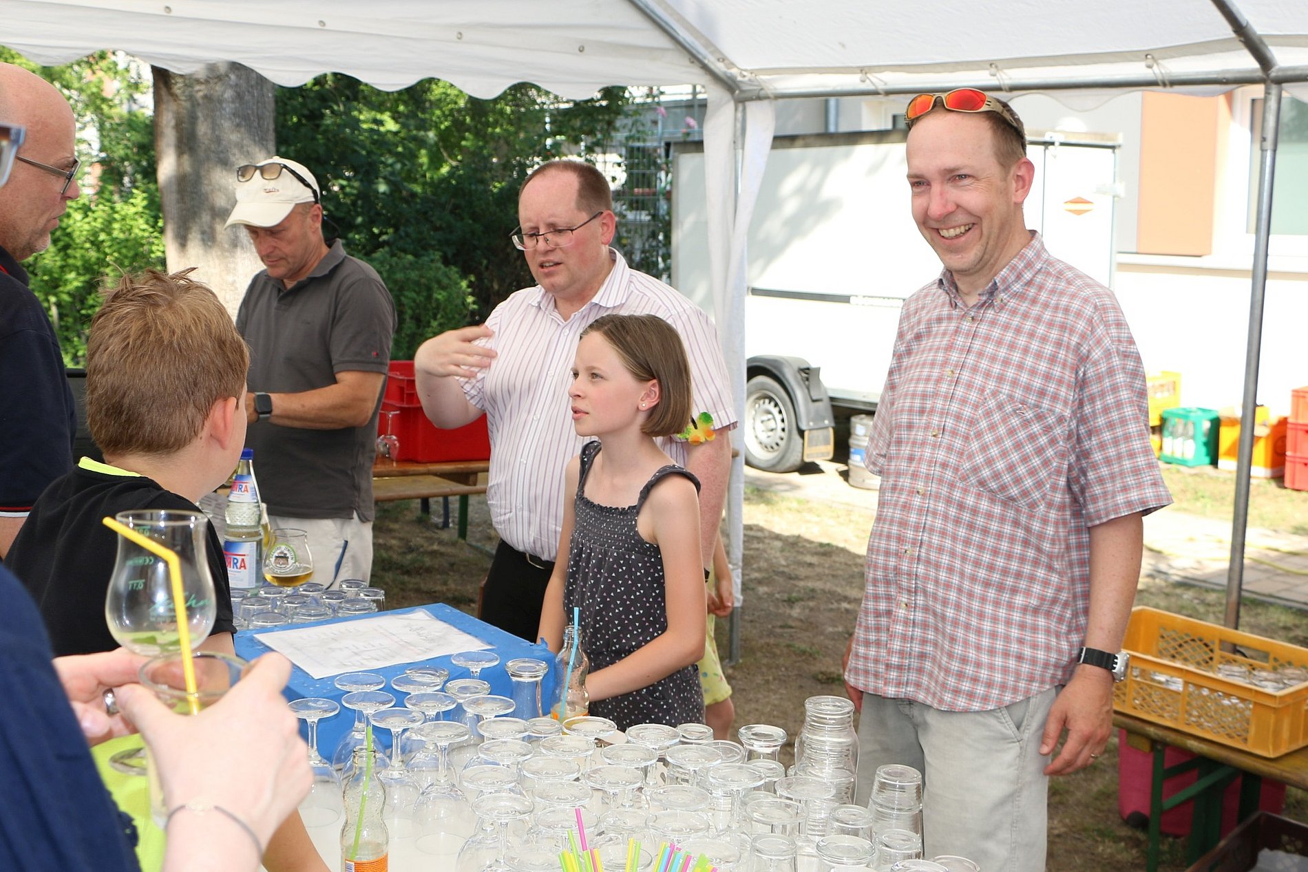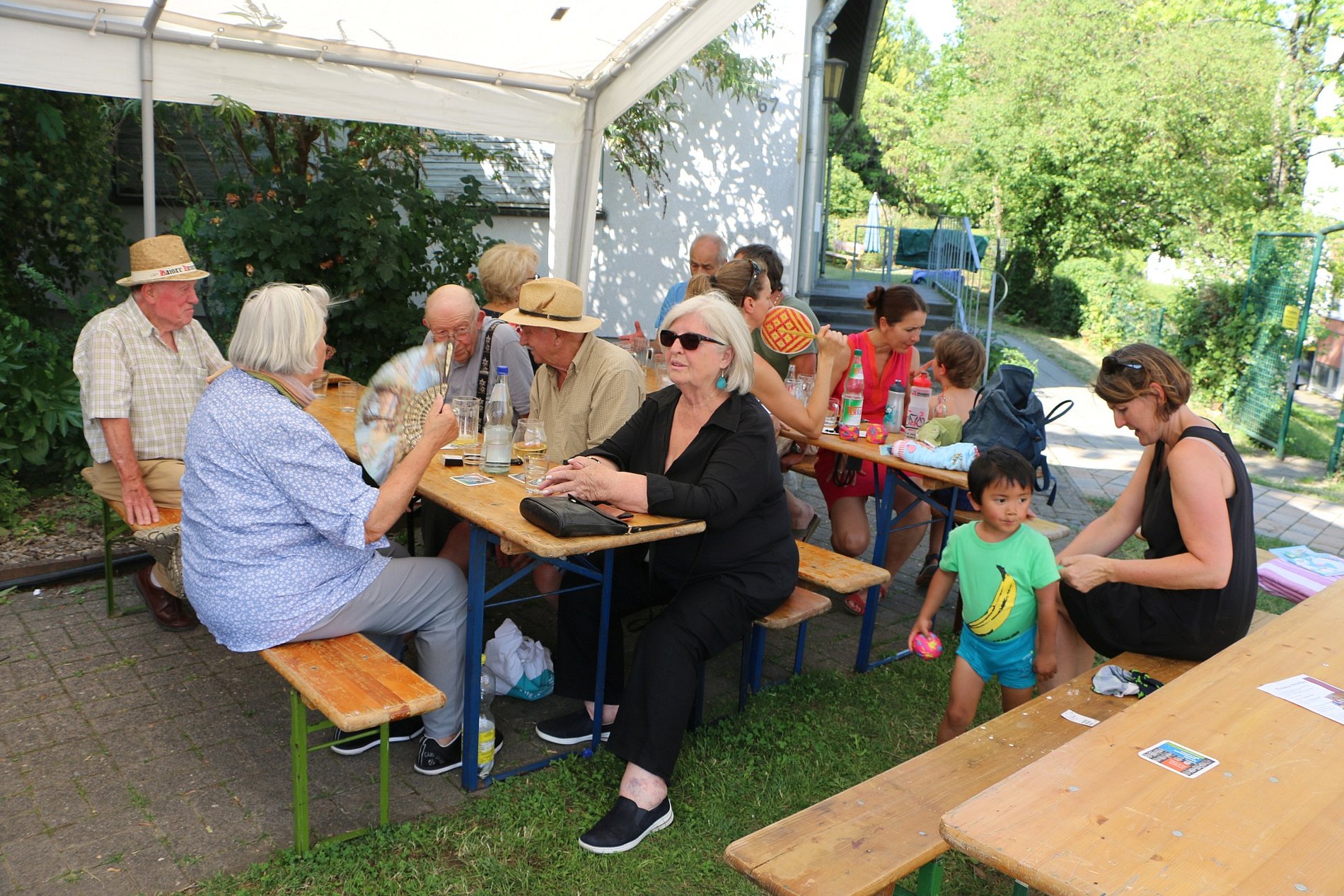 Der Container, der der Gemeinde seit Baubeginn als Zwischenlager dient, steht noch immer auf der Festwiese, die alternative Wiese an der Atzelbergmauer ist nicht gemäht, überall liegt Baumüll herum, die Küchen sind noch nicht fertig eingerichtet und am Tag des diesjährigen Kindergarten- und Gemeindefest findet der "Ironman- Wettbewerb" statt und die Sommerferien beginnen. Zu allem Überfluss sind für den Tag des Festes tropische Temperaturen von fast 40 Grad Celsius angekündigt. Doch: