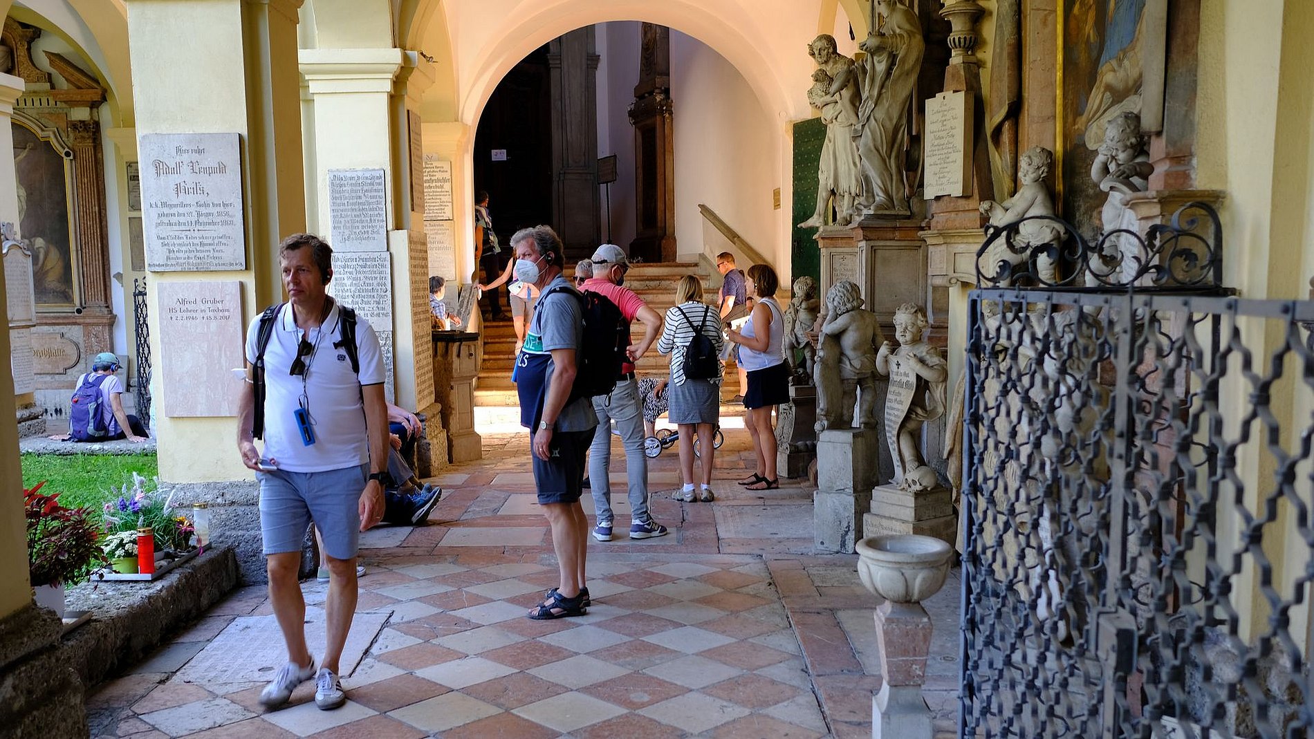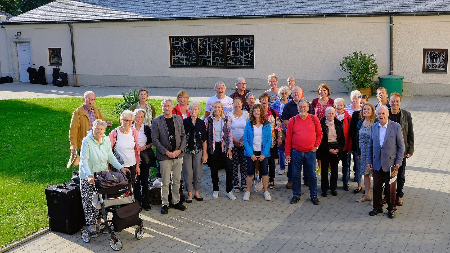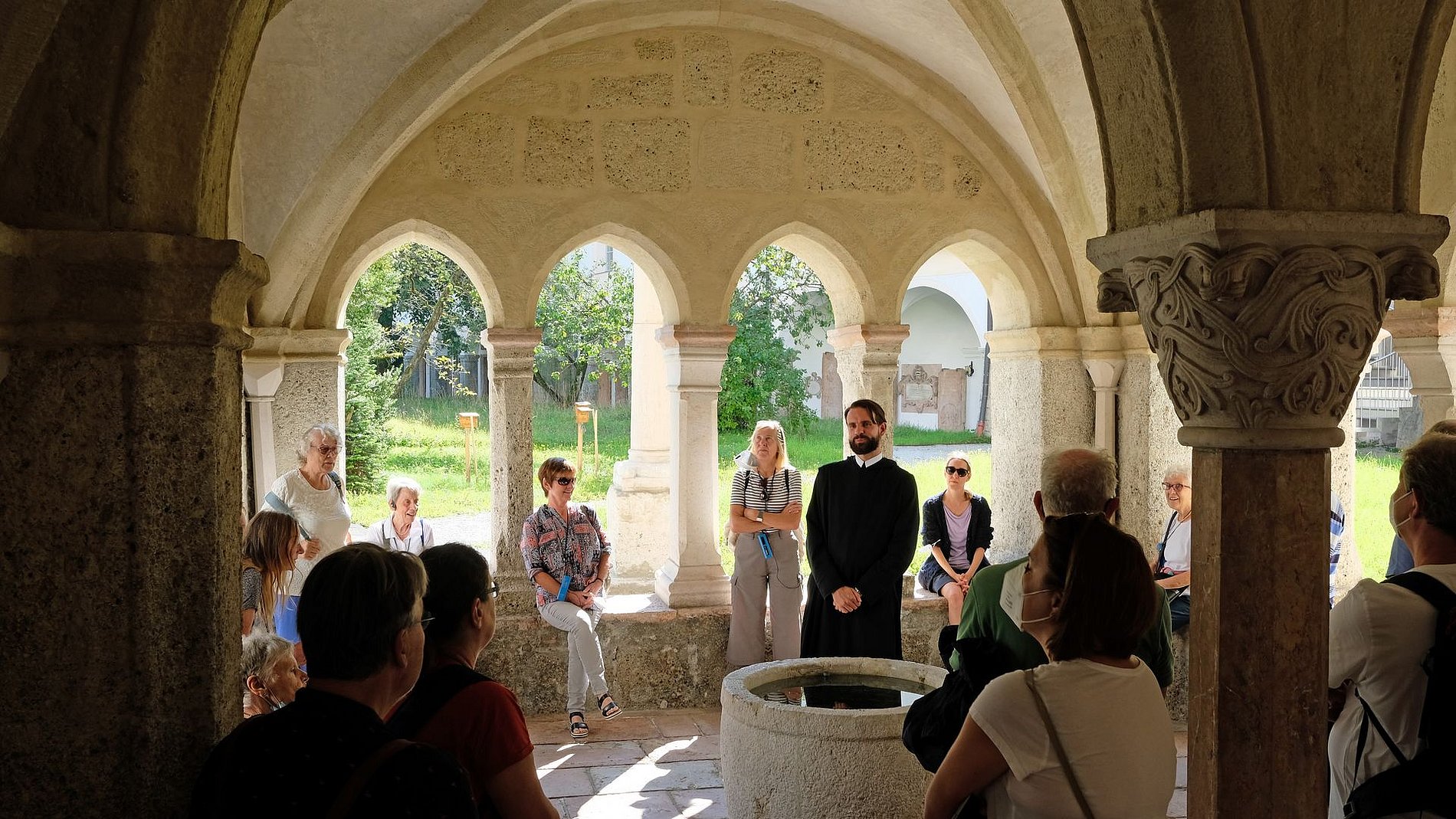 In einer kleinen Wanderung spazierte die Gruppe am Donnerstagmorgen vom Johannessschlössl über den Mönchsberg zur Festung Hohensalzburg, wo ein wunderbarer Blick hinunter zur Stadt und in die Gebirgswelt die Teilnehmer begeisterte. Nachmittags ging es dann auf die andere Seite der Salzach. Auf dem Programm standen das Schloss Mirabell und sein herrlicher Garten. Dem schloss sich ein Spaziergang durch die sogenannte Neustadt und zum St. Sebastiansfriedhof an.