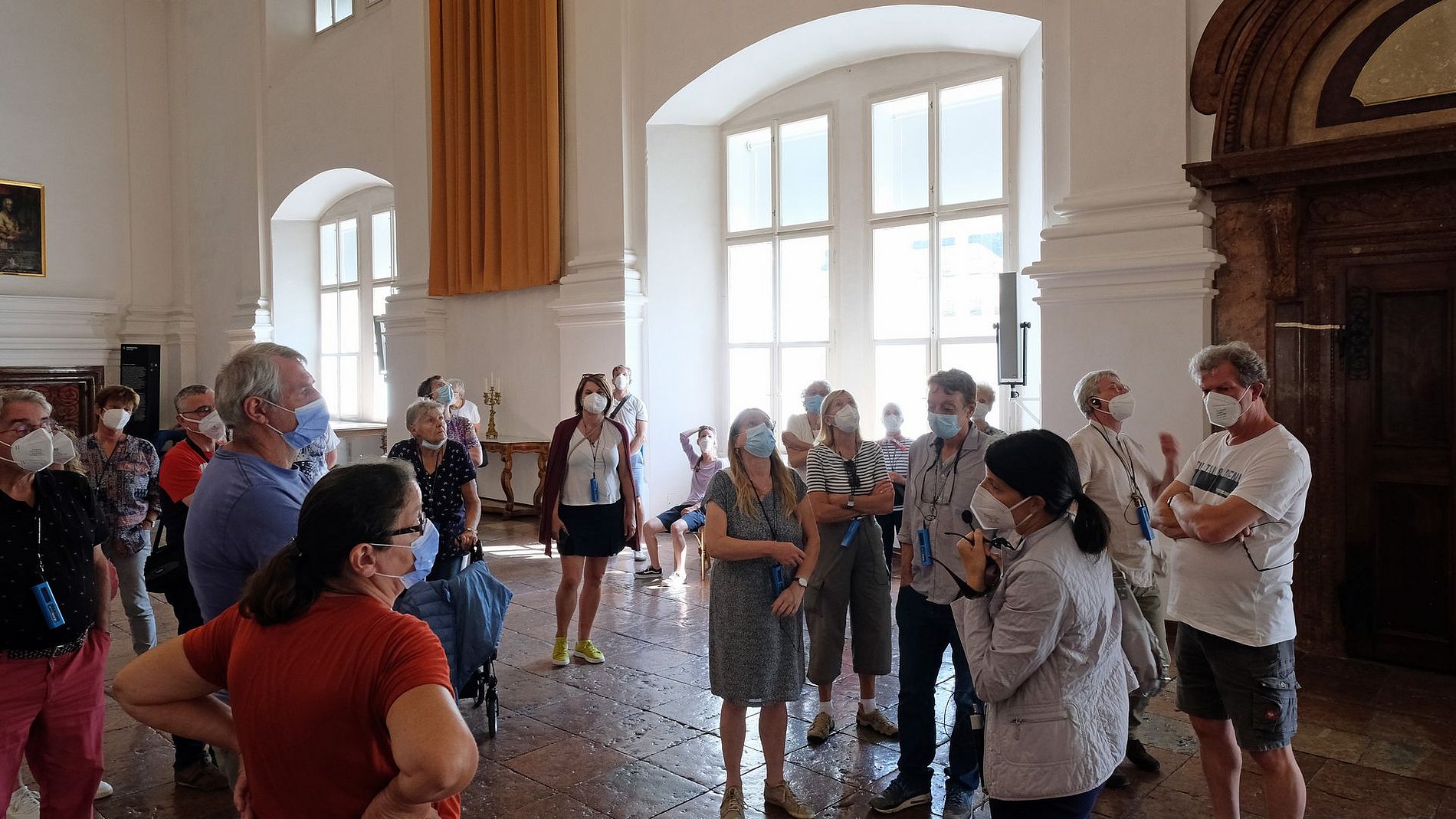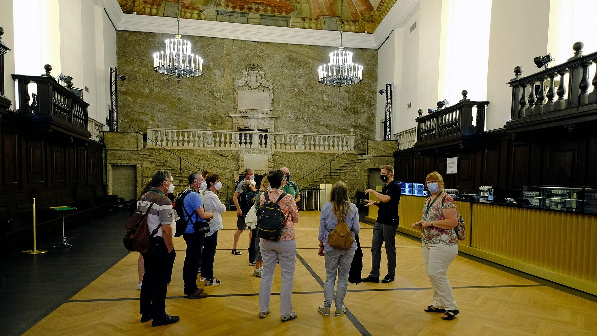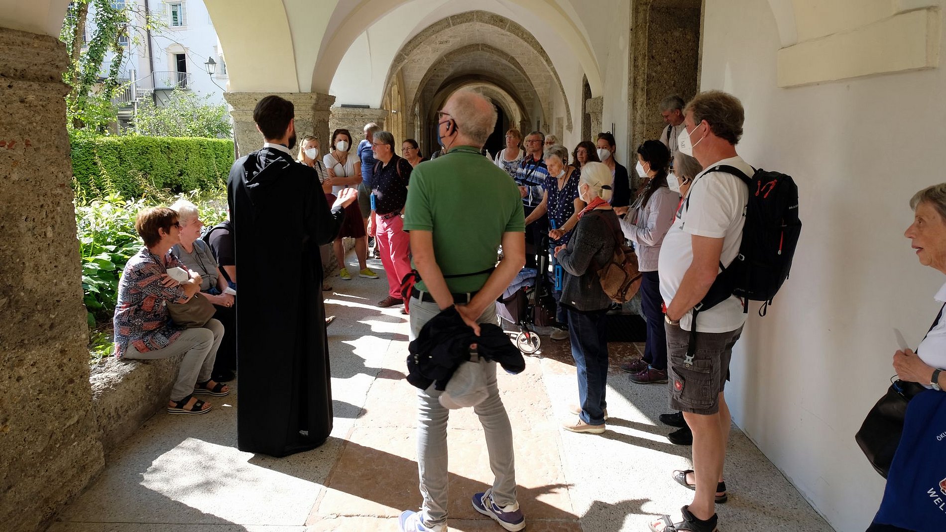 Am Montag begann der erste Teil des zweitägigen Stadtrundgangs. Das erste Ziel war das Benediktinerstift St. Peter. Dort wurde die Gruppe von Pater Johannes begrüßt, der sehr eindrucksvoll durch die Abtei führte. Der Nachmittag war geprägt von der Besichtigung des Domquartiers, also den Prunkräumen der fürsterzbischöflichen Residenz und der Orgelempore des Doms, von wo man einen herrlichen Blick in das Gotteshaus werfen konnte.
