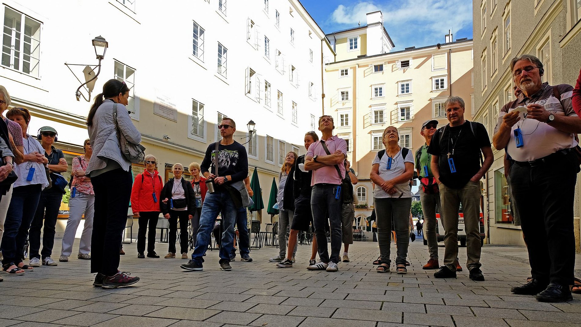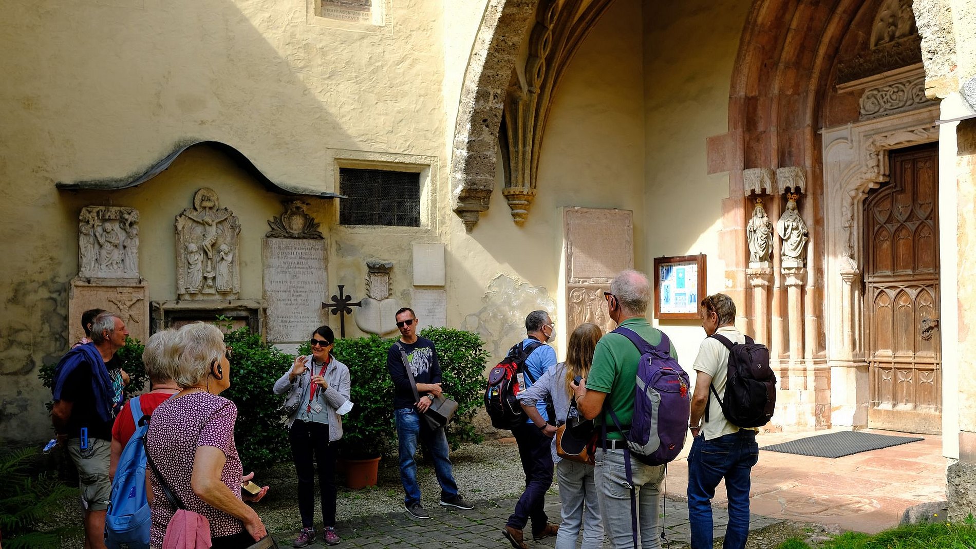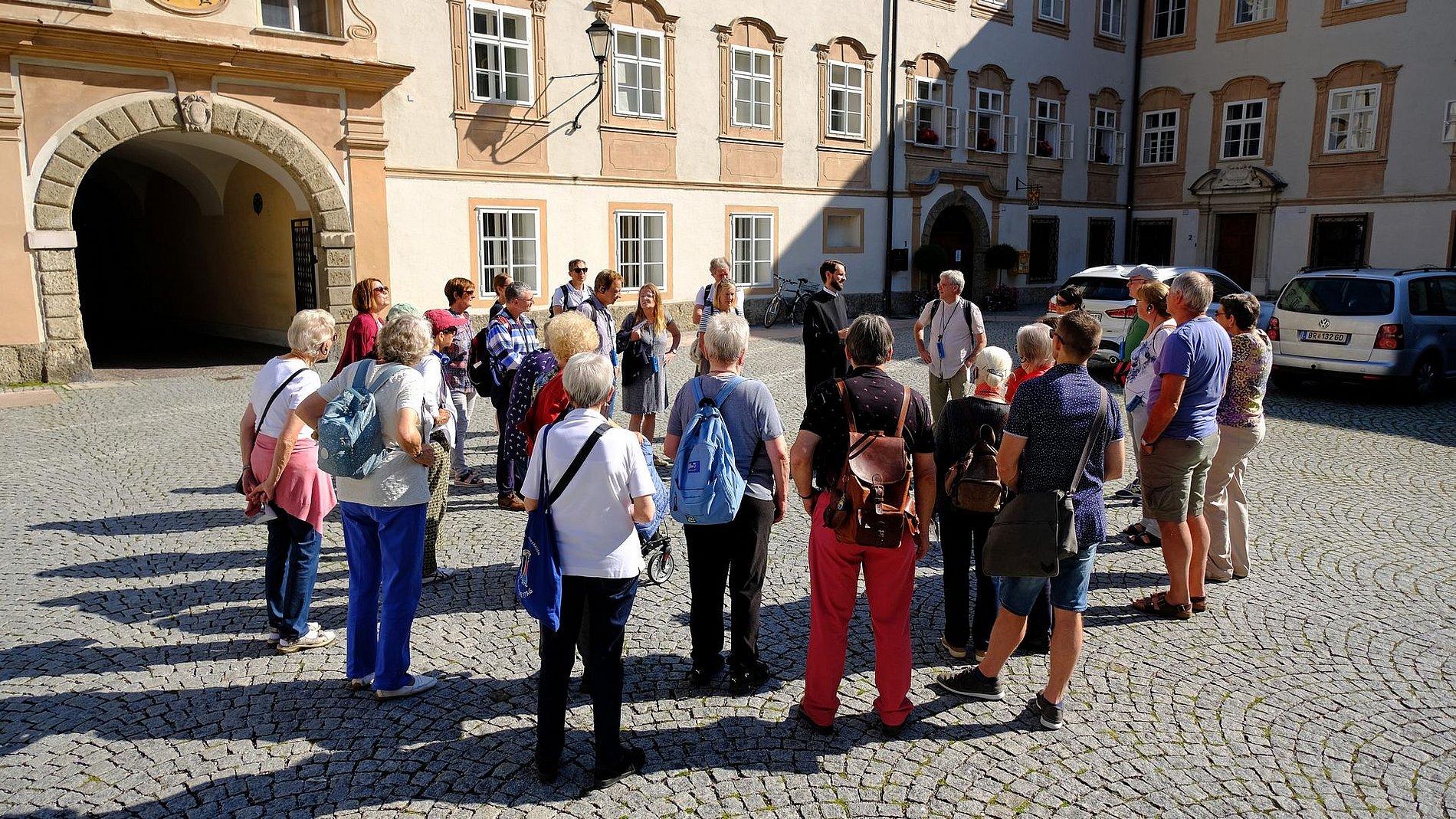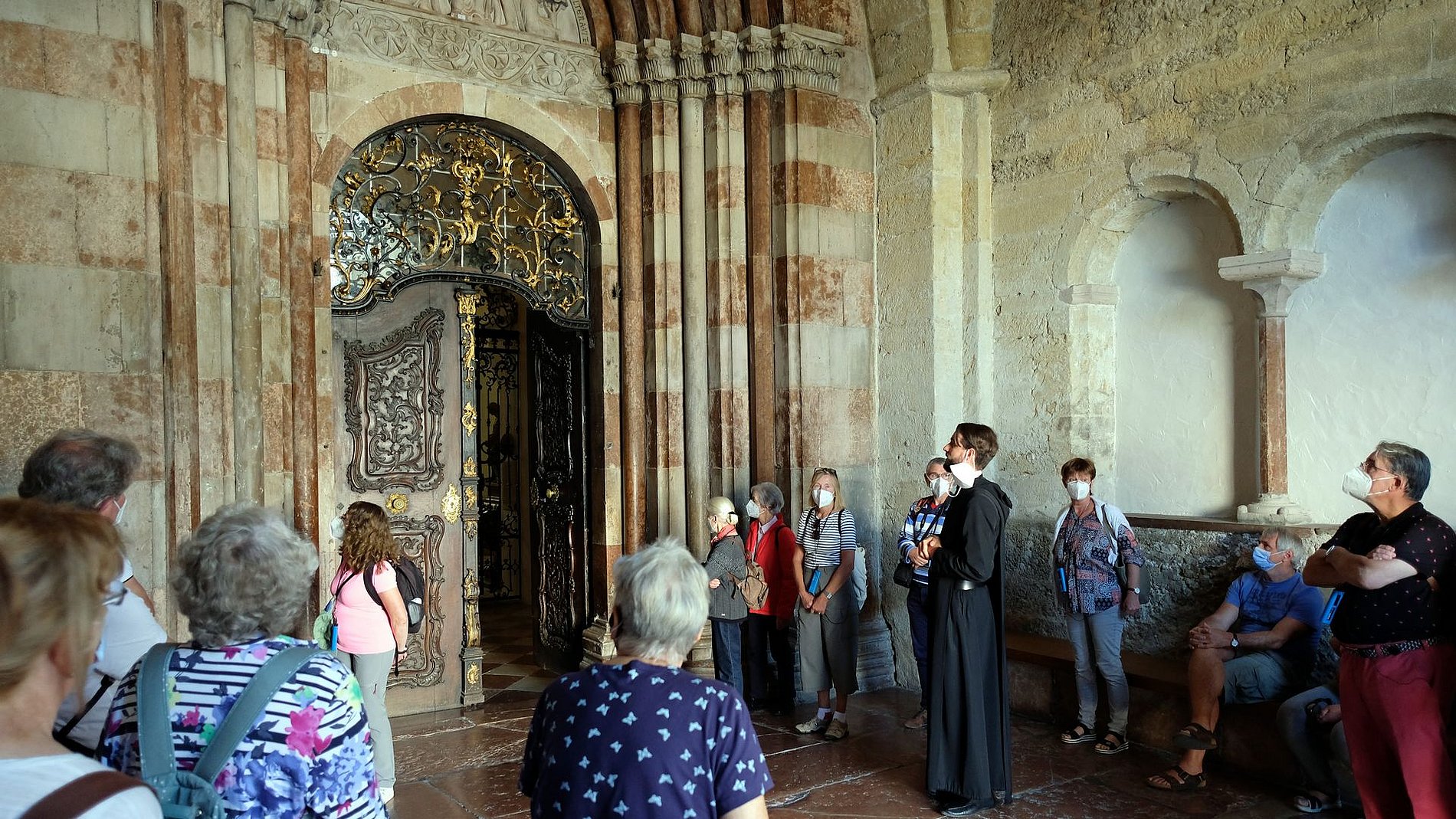 Am Montag begann der erste Teil des zweitägigen Stadtrundgangs. Das erste Ziel war das Benediktinerstift St. Peter. Dort wurde die Gruppe von Pater Johannes begrüßt, der sehr eindrucksvoll durch die Abtei führte. Der Nachmittag war geprägt von der Besichtigung des Domquartiers, also den Prunkräumen der fürsterzbischöflichen Residenz und der Orgelempore des Doms, von wo man einen herrlichen Blick in das Gotteshaus werfen konnte.