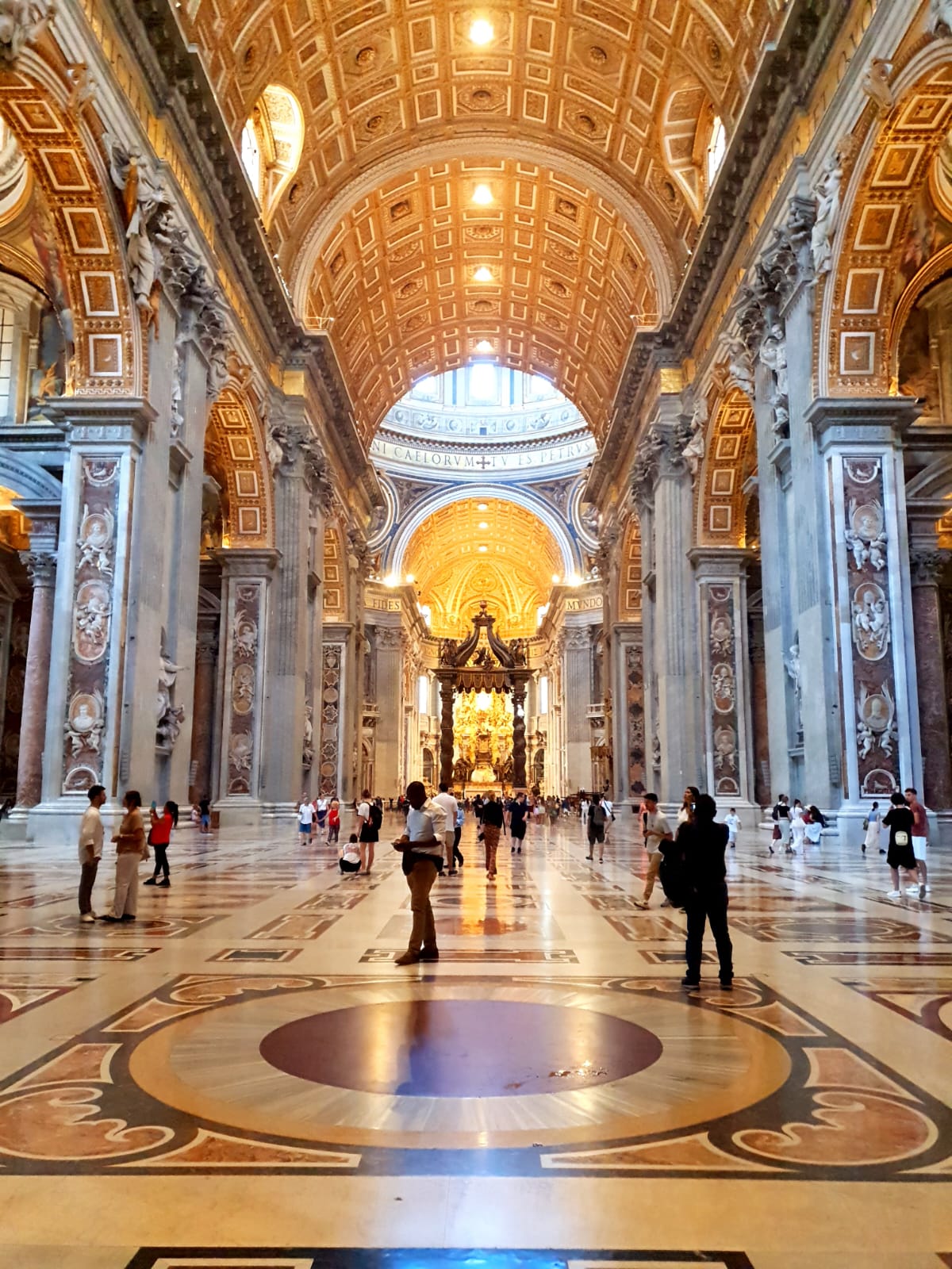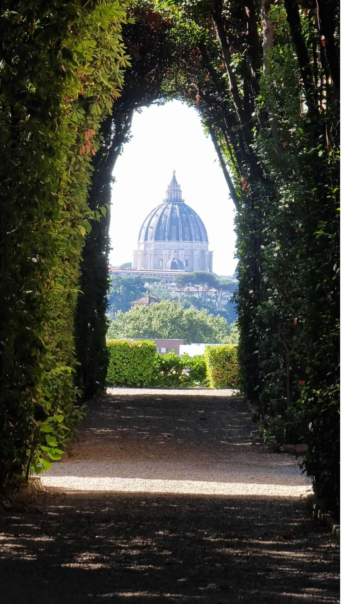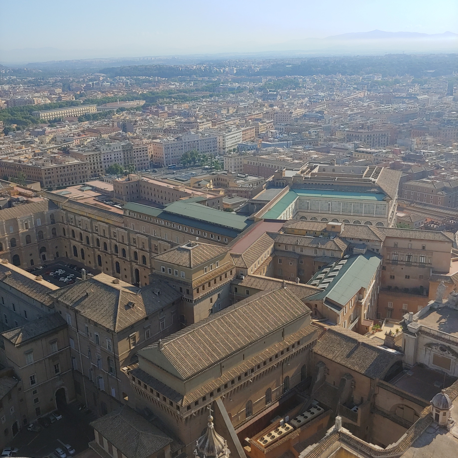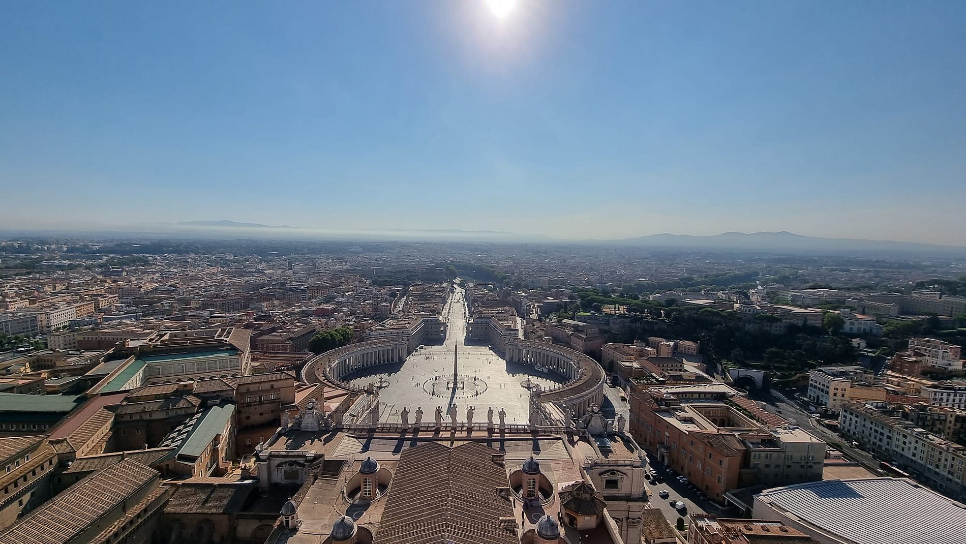 Für Frühaufsteher ermöglichten wir am Abreisetag noch das Besteigen der Kuppel vom Petersdom. Für mich, mit meiner Höhenangst, ein absolutes Highlight. Passend zu unserem Wallfahrtsfahrts-Schlager: „Weite Räume meinen Füßen, …“. „Horizonte tun sich auf, …“ nahmen wir wehmütig Abschied von Rom.