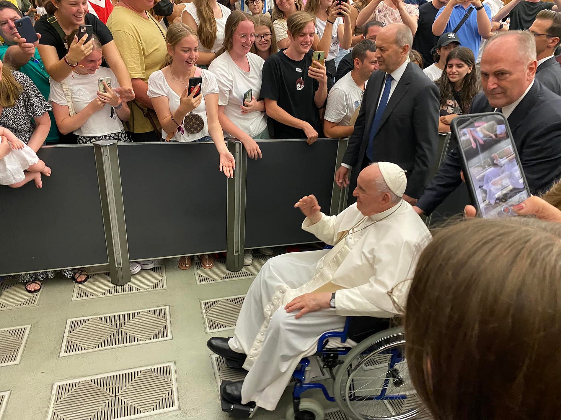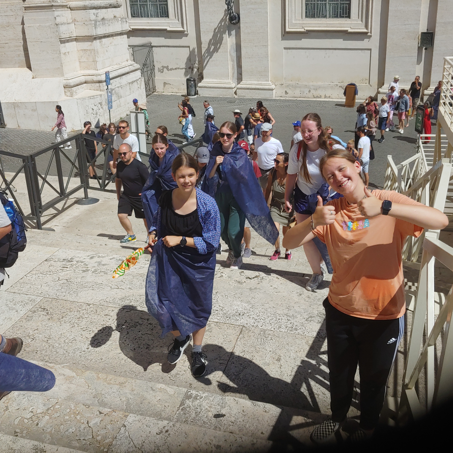 Als Ersatz für die verschobene große Ministrantenwallfahrt fuhren 45 MinistrantInnen aus den Pfarreien St. Jakobus und St. Josef in der zweiten Ferienwoche nach Rom. Dem Reisesegen durch Pfarrer Schmidt folgte unmittelbar nach unserer Ankunft der Segen des Papstes beim Angelusgebet.