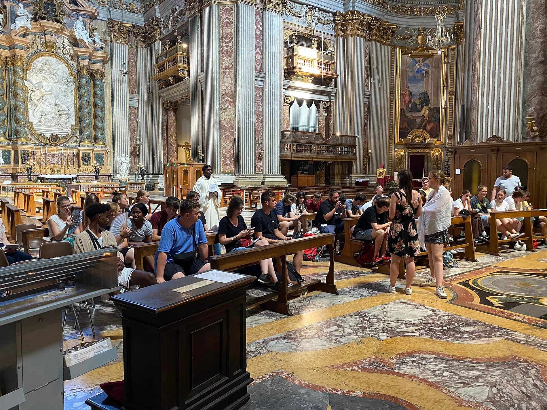 Viel zu schnell kam der letzte Tag, prall gefüllt mit tollen Führungen im Petersdom, dem Kollosseum, auf dem Palatin und im Forum Romanum. Total geschafft feierten wir unseren letzten Gottesdienst im Germanicum! Es hätte keinen bessern Ort geben können, um sich über das eigene Gottesbild und der unzufrieden machenden Rolle der Frau in der katholischen Kirche Gedanken zu machen.