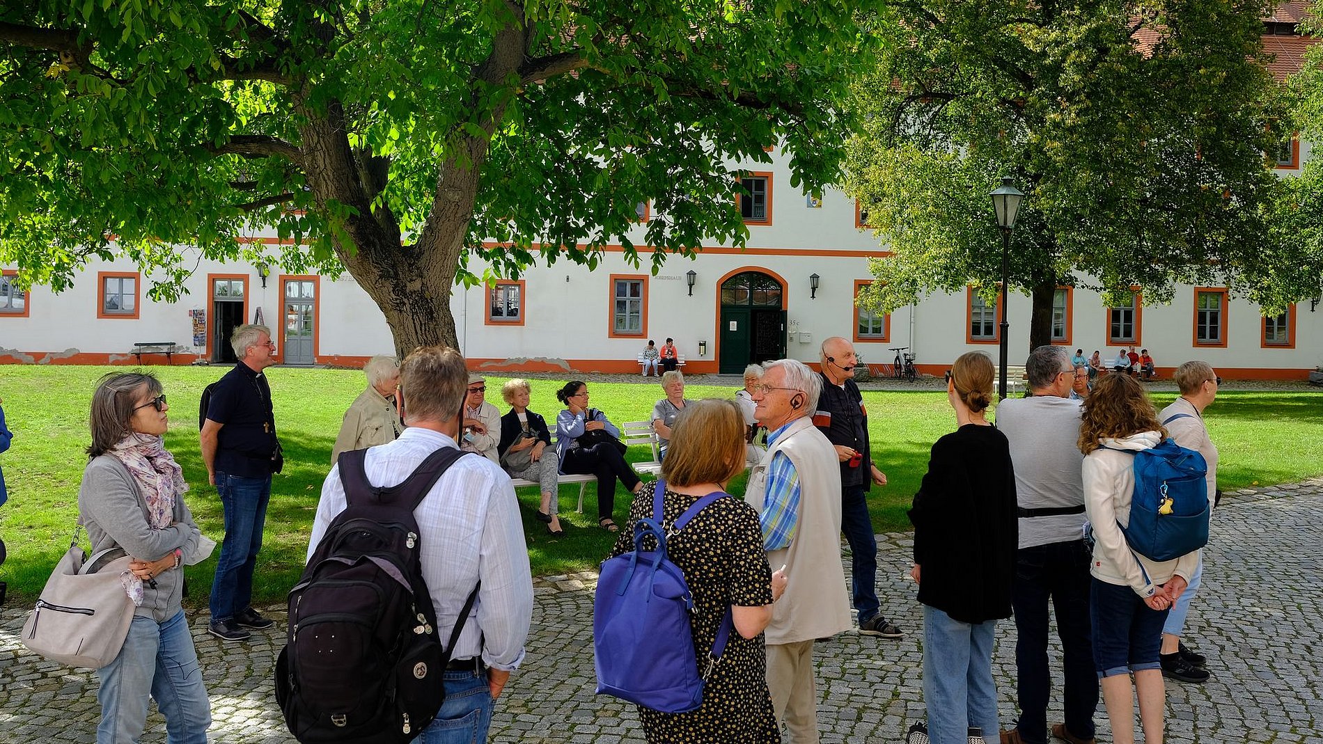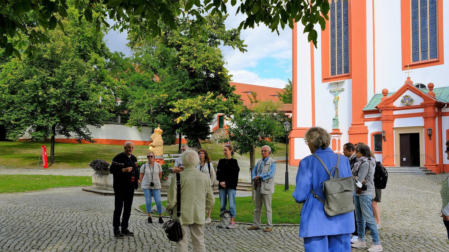 Bereits auf der Hinfahrt machten die Leute von St. Josef Bekanntschaft mit der sorbischen Sprache. In dem zweisprachigen Ort Panschwitz-Kuckau wurden wir auf Sorbisch zur Führung durch das in der Mitte des 13. Jahrhunderts gegründete Kloster St. Marienstern begrüßt. Seit der Klostergründung leben und arbeiten die Zisterzienserinnen in St. Marienstern.