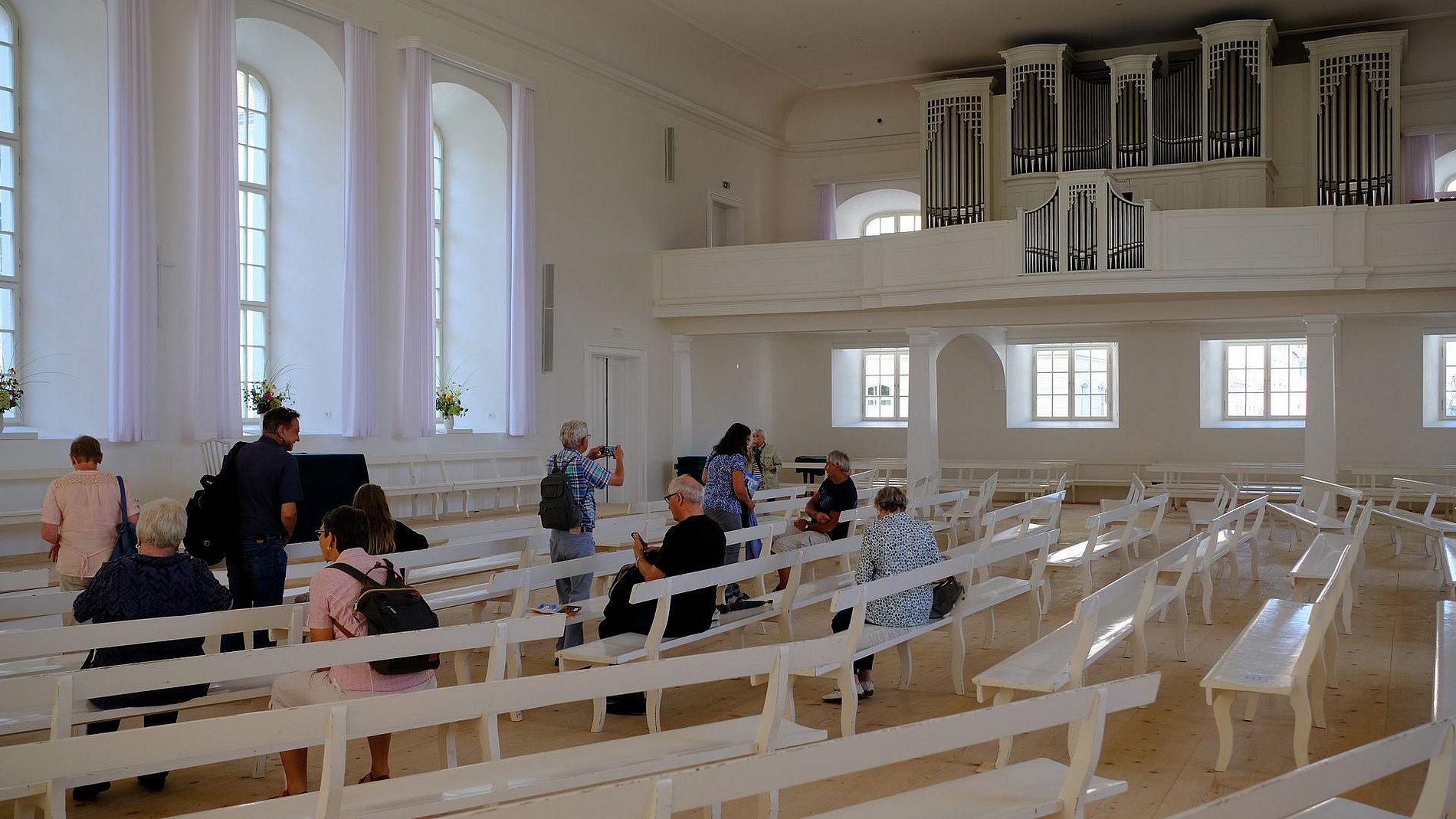 Am darauf folgenden Tag hatte die Reisegruppe die Gelegenheit, in Herrnhut die Herrnhuter Gemeine (nicht Gemeinde) kennen zu lernen. Höhepunkte waren hierbei der Besuch des großen Kirchensaals – wo wir am Mittagsgebet teilnahmen – und des Gottesackers, also des Friedhofs der Herrnhuter Gemeine, wo auch der Gründer der Glaubensgemeinschaft, Graf Zinsendorf, bestattet wurde. Obercunnersdorf war die nächste Anlaufstelle. Ein Ort mit einer architektonischen Besonderheit. Obercunnersdorf schmückt sich mit mehr als 250 Umgebindehäusern. Das Umgebindehaus verdankt seine Existenz einer Mischbauweise aus slawischem Blockhaus und fränkisch-hessischem Fachwerk, das vielfach mit Schieferschindeln verkleidet wurde. Hieraus und aus den gepflegten Gärten resultiert ein äußerst malerisches Dorfbild. Gegen Abend ging es dann nach Ostritz, direkt an der Neiße gelegen. Dort konnte unsere Gruppe das Kloster St. Marienthal besichtigen. Auch dort leben und arbeiten seit der Gründung des Klosters Zisterzienserinnen. Wobei anzumerken ist, dass die Ordensfrauen von St. Marienthal dort schon länger wirken als die Schwestern von St. Marienstern.