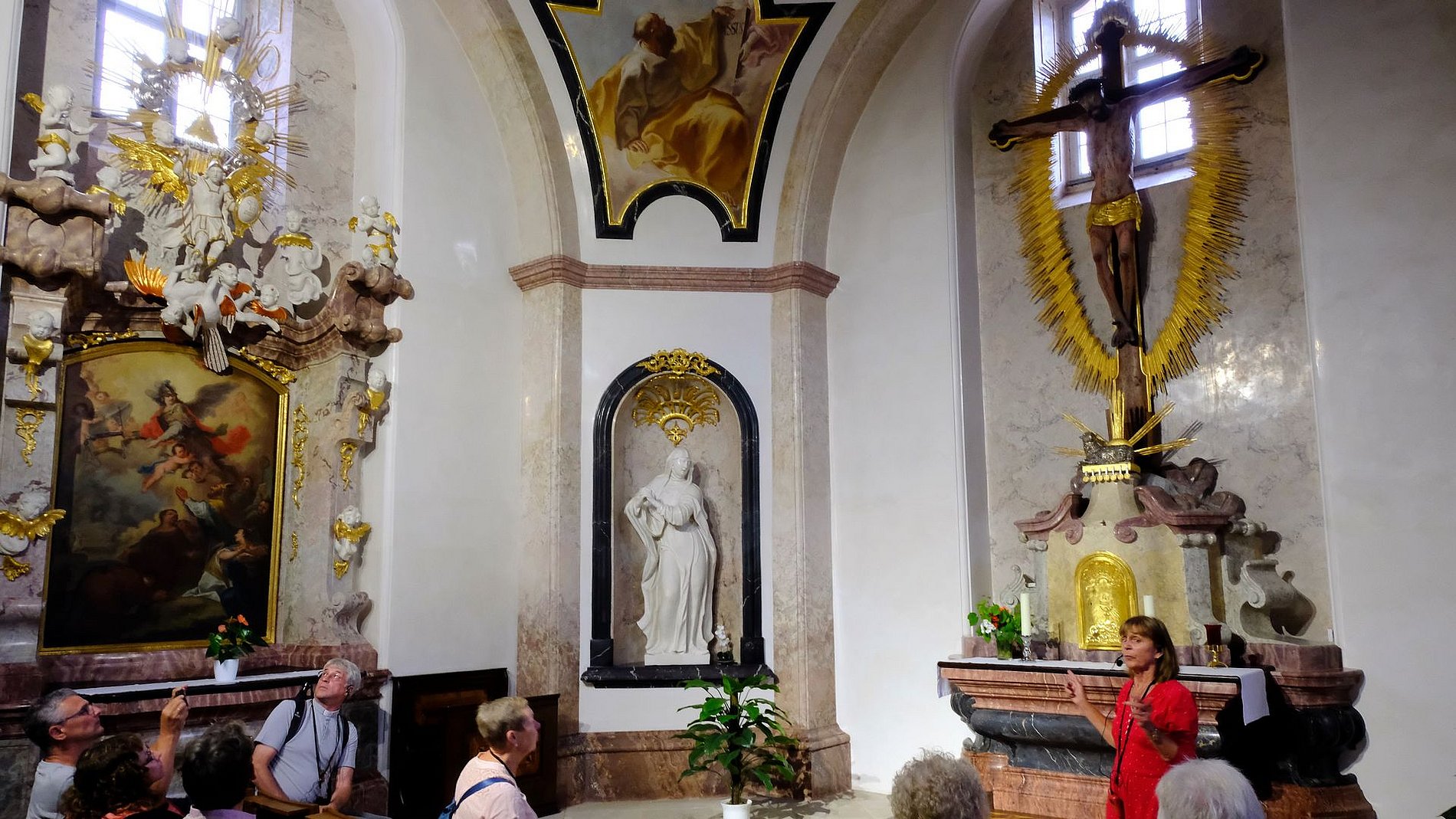 Anderntags blieben wir im Ort unserer Unterkunft, in Görlitz, der östlichsten Stadt Deutschlands. Eine äußerst sehenswerte Stadt. Neben Straßenzügen, die während der Gründerzeit errichtet wurden und heute größtenteils wieder hergerichtet sind, kann man im Altstadtbereich prächtige Häuser aus der Zeit der Gotik, der Renaissance und des Barock bewundern. Die Zeit war viel zu kurz, um alles ausreichend würdigen zu können. Ein nachmittäglicher Spaziergang führte die Leute von St. Josef zum Heiligen Grab. Im Mittelalter hatte ein Edelmann aus Görlitz eine Pilgerfahrt ins Heilige Land unternommen und dort das Grab Jesu besuchen können. So wie er es von dort in Erinnerung hatte, ließ er es in Görlitz aufbauen.