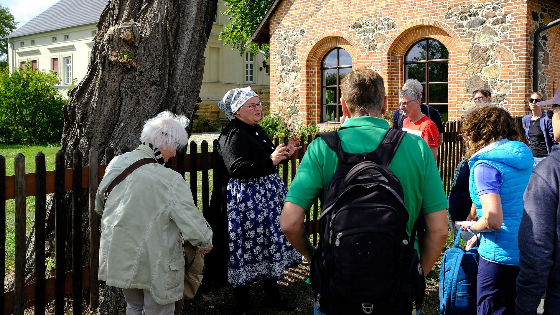 Busfahrer Alex fuhr uns nach der Besichtigung der Abtei nach Cottbus-Willmersdorf, wo wir zunächst Quartier nahmen. Willmersdorf war dann auch Ausgangspunkt für weitere Besichtigungen. Am nächsten Tag stand nämlich der herrliche Park des Fürsten Pückler in Bad Muskau auf dem Programm. Nachmittags war der Besuch des sorbischen Dorfes Schleife angesagt, wo uns die Ortsgeschichte, die Zweisprachigkeit, die Architektur, Kunst und Kultur der Sorben näher gebracht wurden.