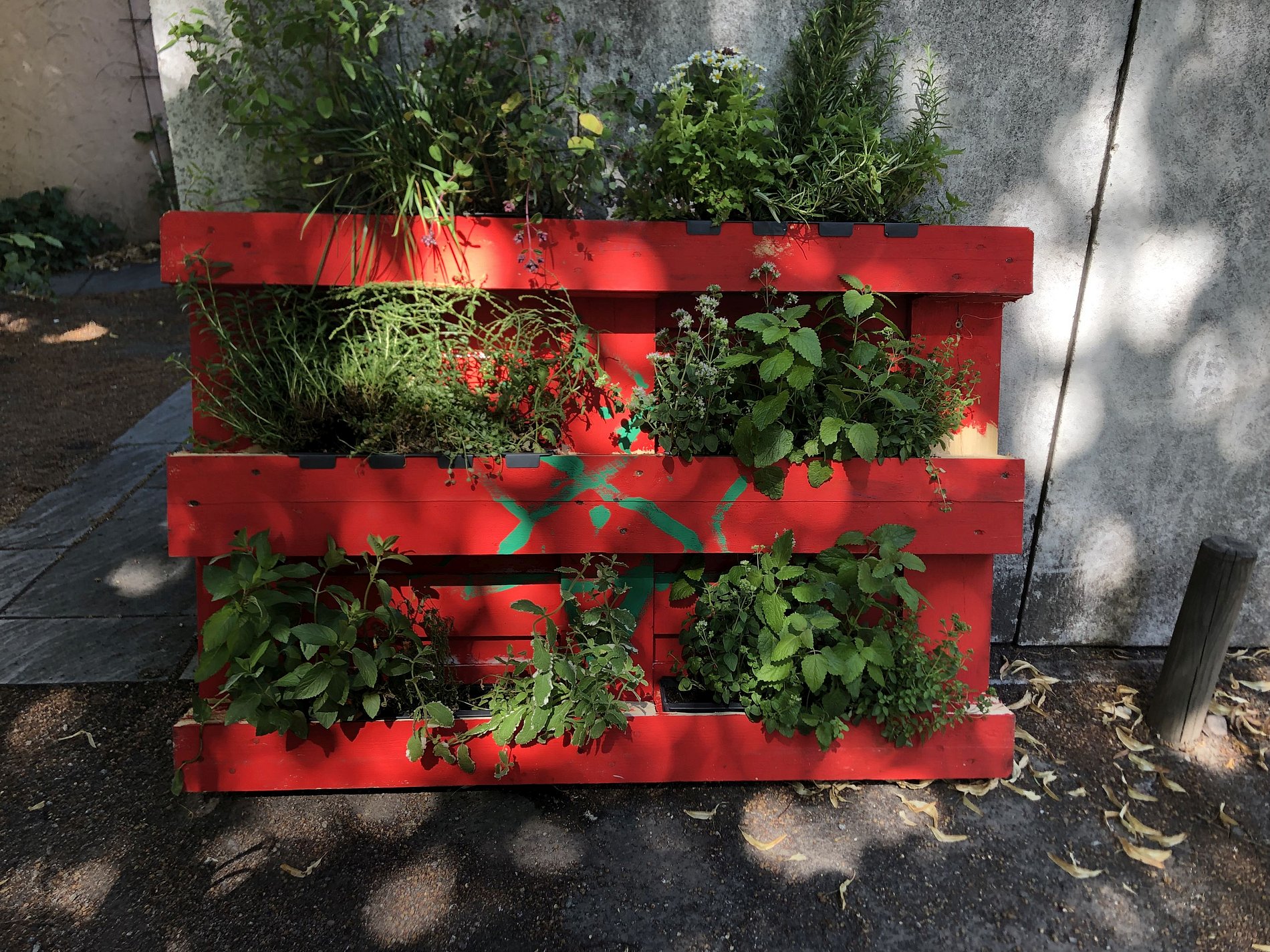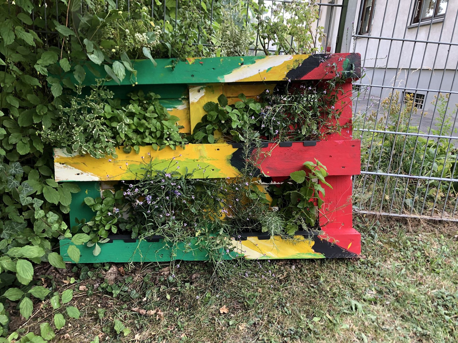 - Der Frankfurter Künstler Jan Christian Pohl hat gemeinsam mit Grundschüler*innen aus insgesamt sieben Frankfurter Schulen Euro-Paletten in den Farben aller UN-Flaggen gestaltet. Diese 193 Kunstwerke wurden zu einer 60 Meter langen Klimawand zusammengesetzt und mit Kräutern bepflanzt. Jeder einzelne KlimaMeter wurde so zu einem Unikat – und damit immer ein erkennbarer Teil dieser Kunstaktion bleiben. Die Pfarrei St. Josef hat nun geholfen, dass die bemalten und bepflanzten Paletten ein neues Zuhause am Kirchort Maria Rosenkranz und Sankt Josef finden. Nach dem Grüne Soße Festival im Juli 2022 haben wir zwei von Kindern bemalte Paletten erworben, die mit Grüne Soße Kräutern bepflanzt sind. Eine Aktion, um Frankfurt noch grüner zu machen! Danke an Beate und Nicole, die sie nun begießen und pflegen. Ihr Lohn: Die hoffentlich reichhaltige Ernte!