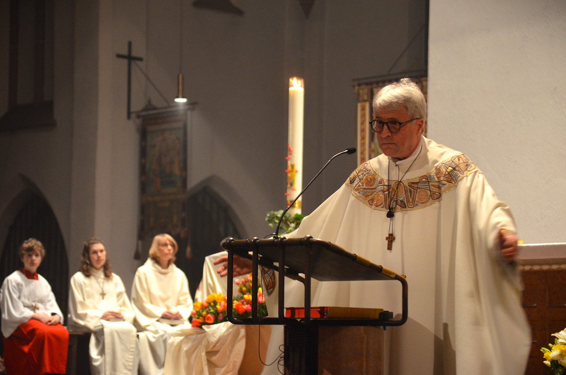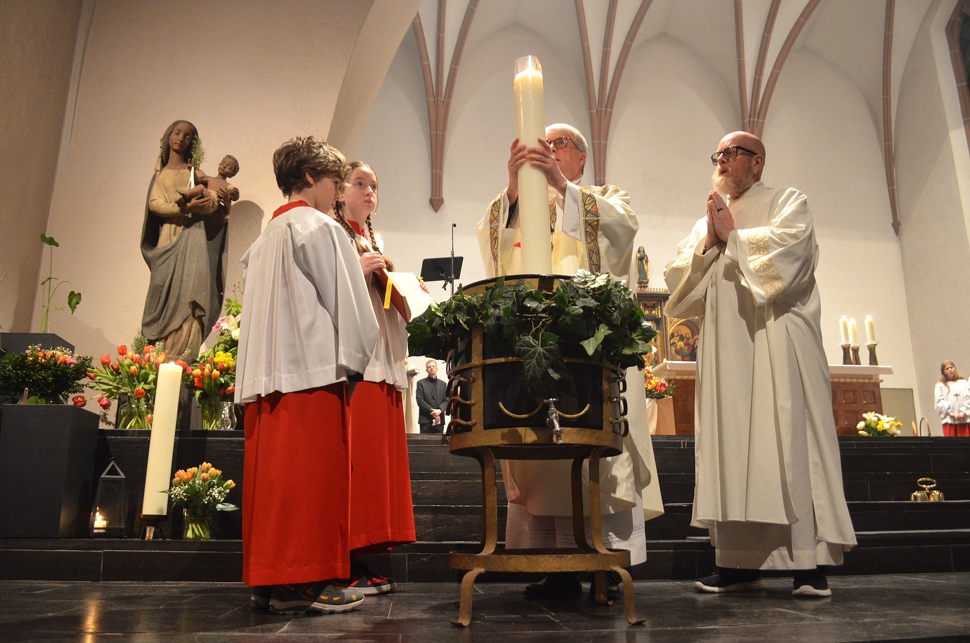 Deshalb gibt es diese Nacht der Erinnerung, die nicht auf Angst setzt, sondern auf das Vertrauen der Zusage, dass Gott vom Anfang bis zum Ende und darüber hinaus den Menschen begleitet. Dieses Bild für das neue Leben wurde uns in der Taufe geschenkt und wird in jeder Osternacht erneuert und vertieft. Und als neue Menschen wollen wir leben, als neue Menschen, denen der Tod nichts anhaben kann, weil sie im Leben und im Sterben auf Jesus Christus geschaut haben und ihm nachgefolgt sind.