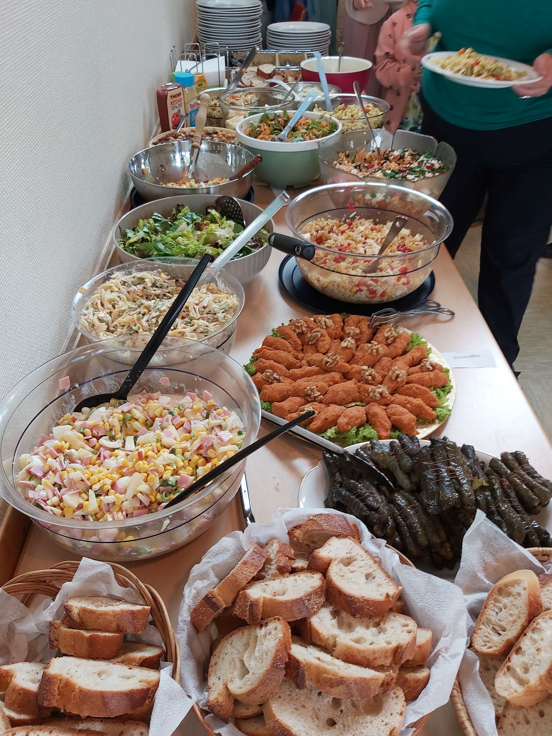 Besonders schön war, dass sich mehr als die angemeldeten Helfer bei den Diensten engegierten und auch Salate und Kuchen mitgebracht hatten. So reichte es gut aus und war abwechslungsreich aus verschiedenen Ländern, wie unser Stadtteil.