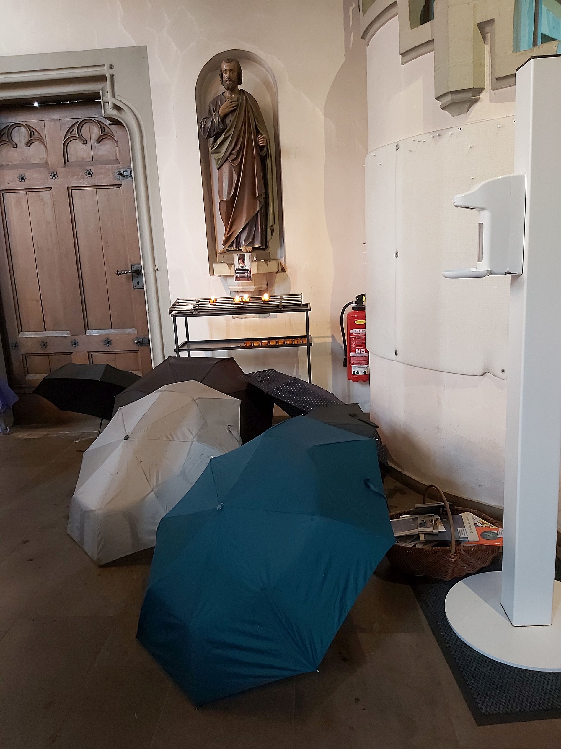 Die beiden Kirchorte Maria Rosenkranz Seckbach und Sankt Josef Bornheim haben sich in diesem Jahr nicht im Günthersburgpark getroffen. Wegen des Regenwetters konnte nicht wie üblich vor der Orangerie gefeiert werden. Regenschauer zogen immer wieder über Bornheim.