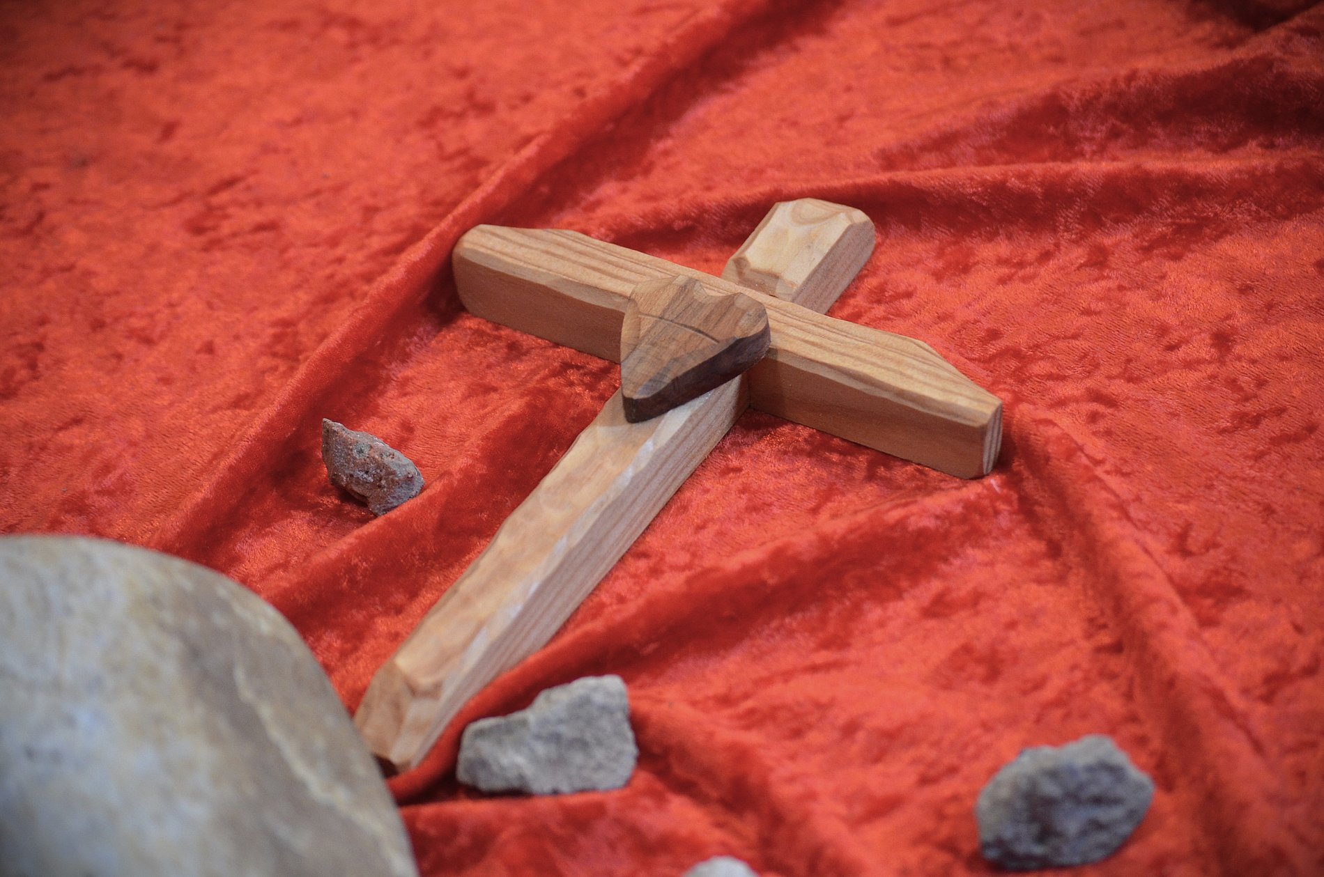 Es ist wichtig, dass es etwas Greifbares gibt. Wir hatten zum Abendmahl kleine Brote, wir haben Kerzen angezündet, die Schwere des Weges mit kleinen Steinen nachempfunden. Bei Kindern müssen wir alle Sinne ansprechen: Also das Haptische, der Geschmack, der Geruch, was man sieht und fühlt. Durch das ganzheitliche Erleben bleibt die Geschichte auch eher in Erinnerung, als wenn ich die Geschichte nur erzähle und die Kinder zuhören.